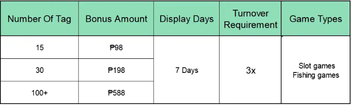 Everyone who participates in the event may randomly get a share bonus, amounting to ₱ 98 – ₱ 588, (The more friends you tag, the more bonuses you get.)